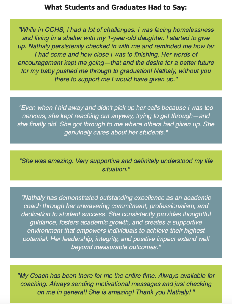 Each year, we ask students, graduates, staff and partners to vote on who they think should be the Academic Coach of the Year. This year we received more votes than ever before! Every coach received so many commendations and notes of gratitude and praise. A special thank you to everyone who voted, and THANK YOU to our Academic Coaches who work to change lives every day.